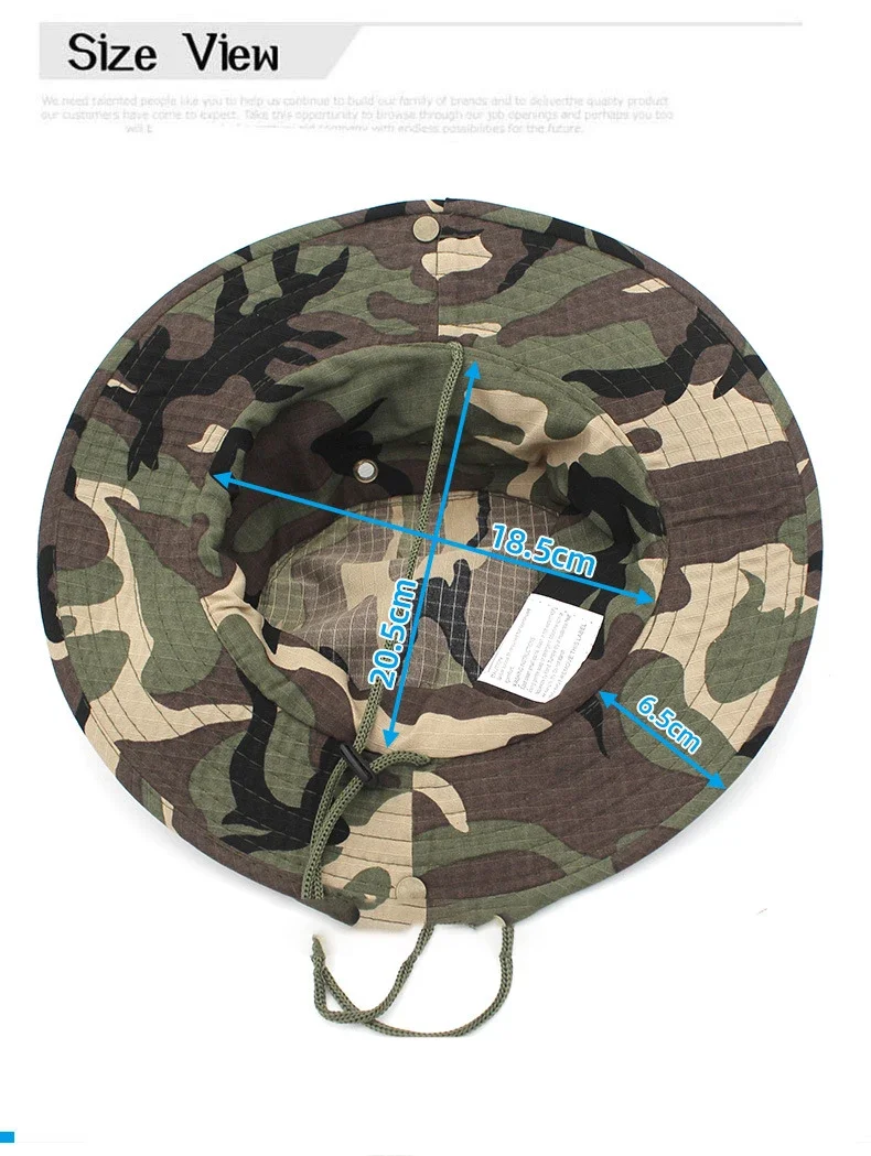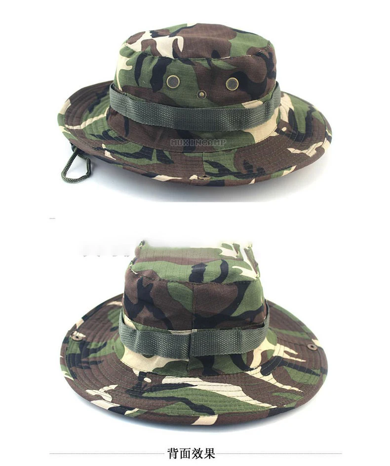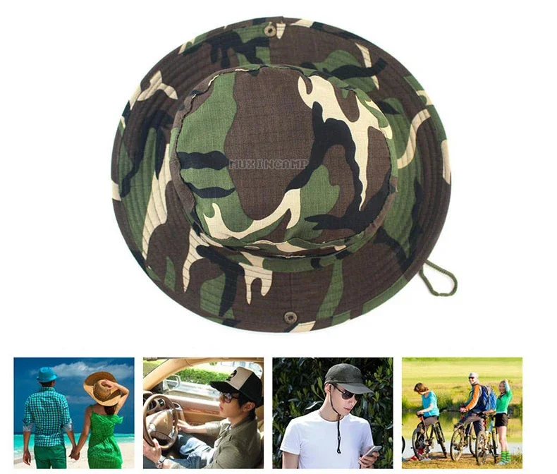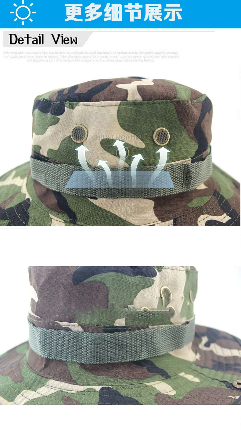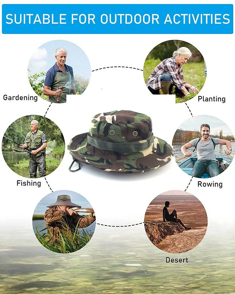 Camouflage Tactical Bucket Hat Summer Men Boonie Hat Outdoor UVProtection Wide Brim Panama Safari Hunting Hiking Fishing Sun Ca