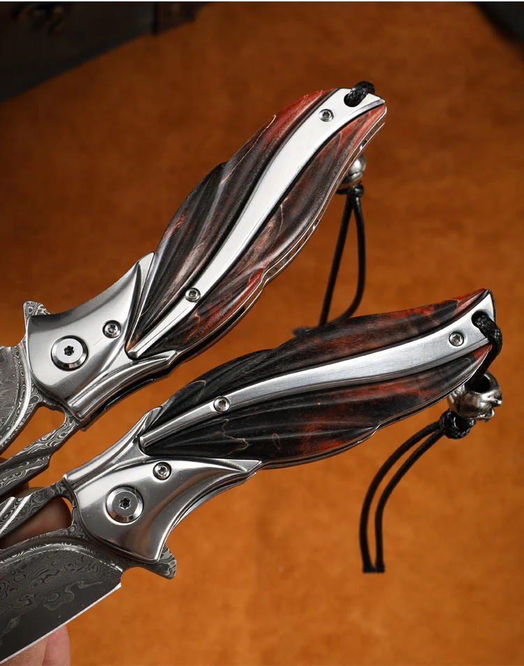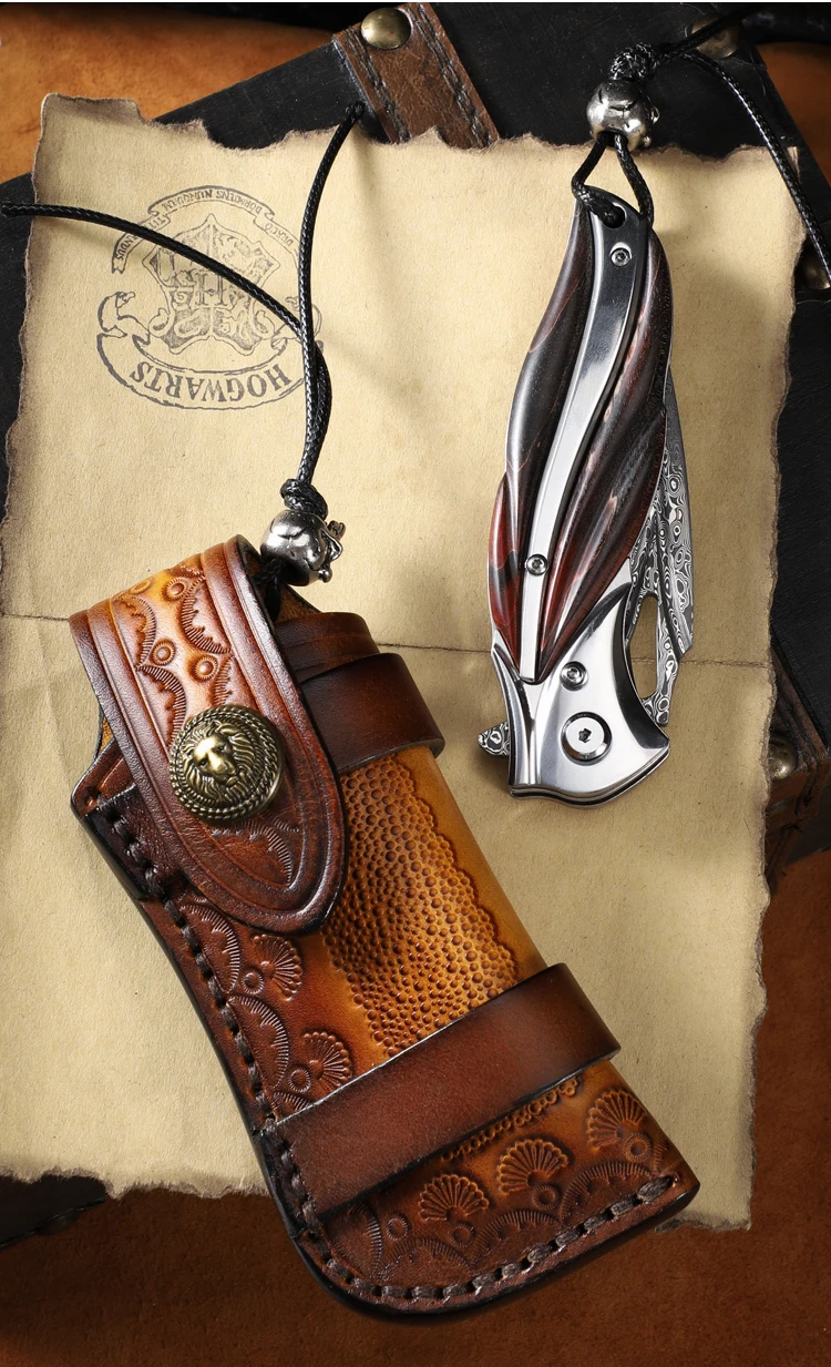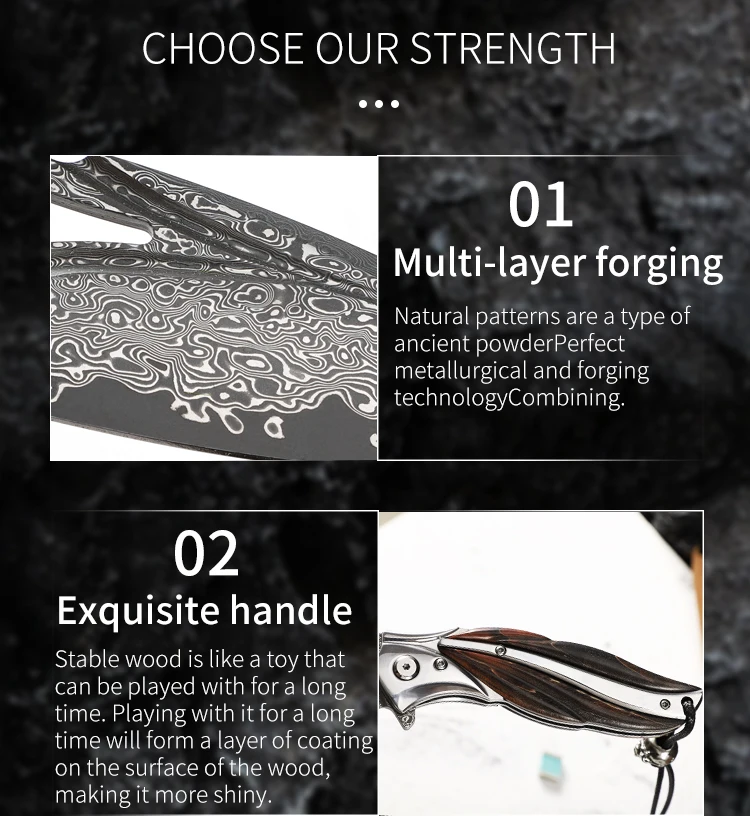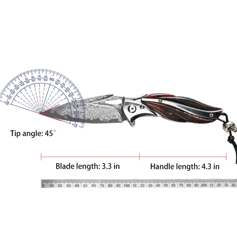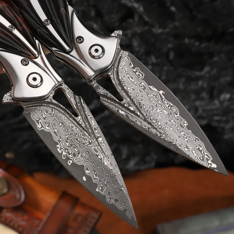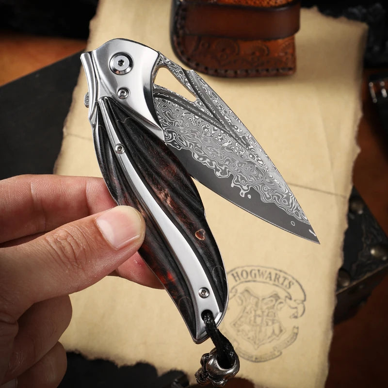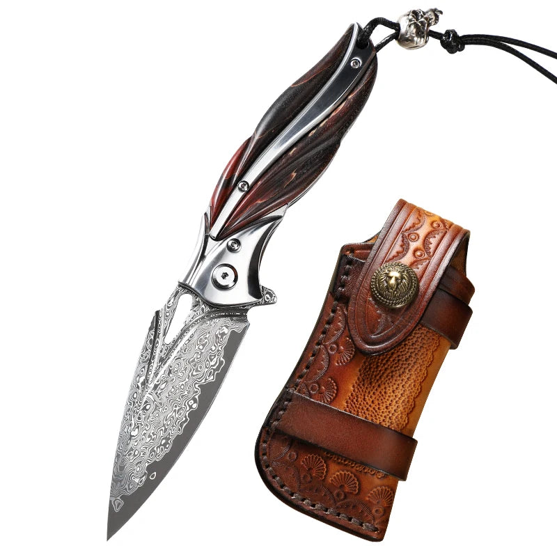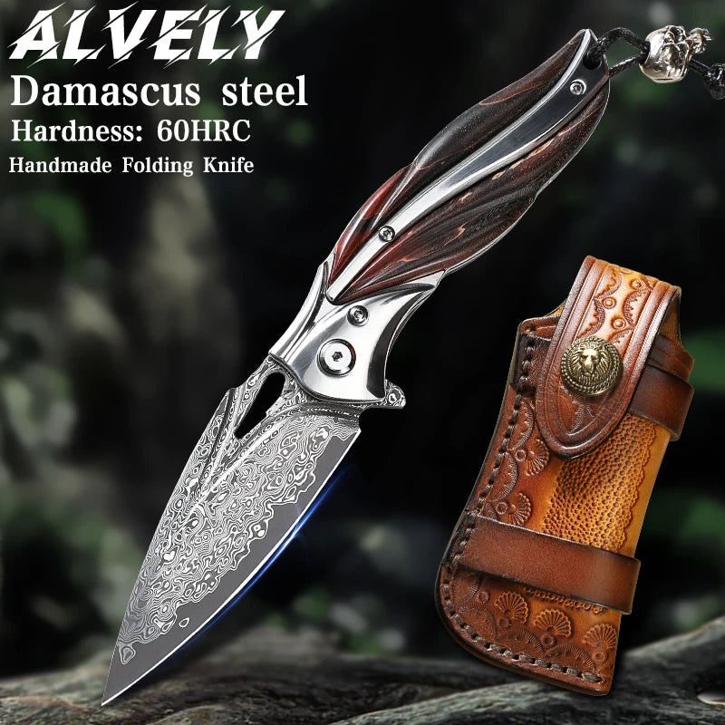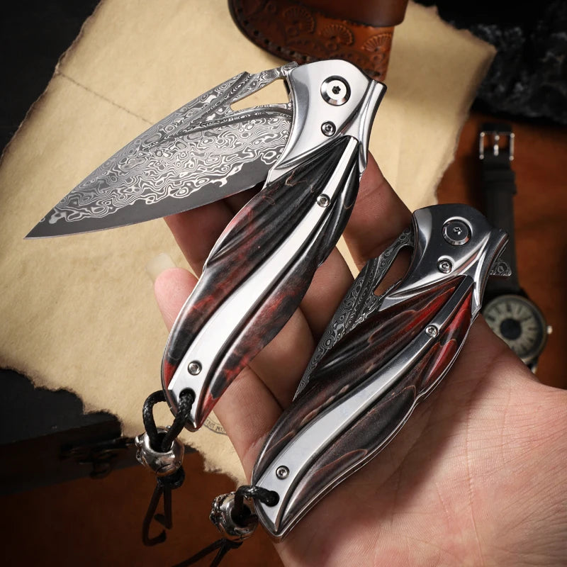 Canivete de aço de Damasco de alta qualidade, canivete EDC para homem, caça ao ar livre, canivete dobrável para campismo