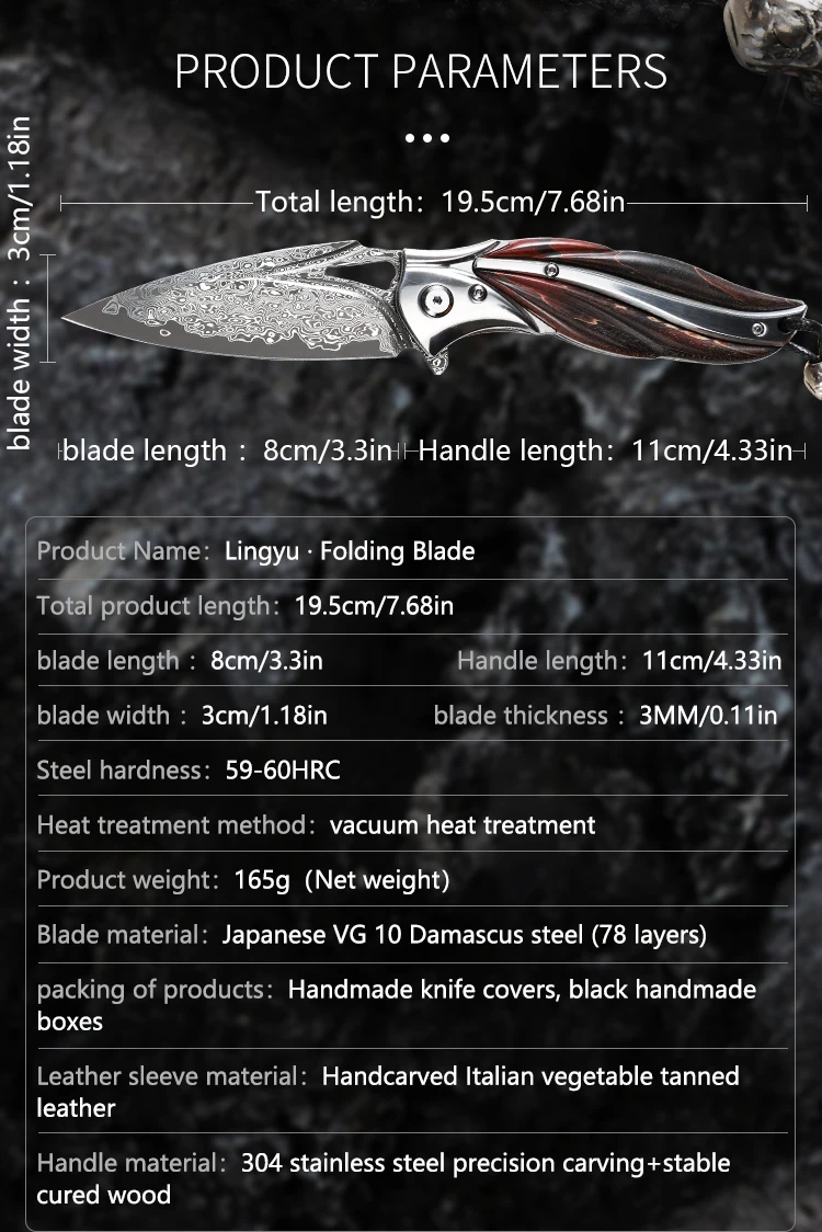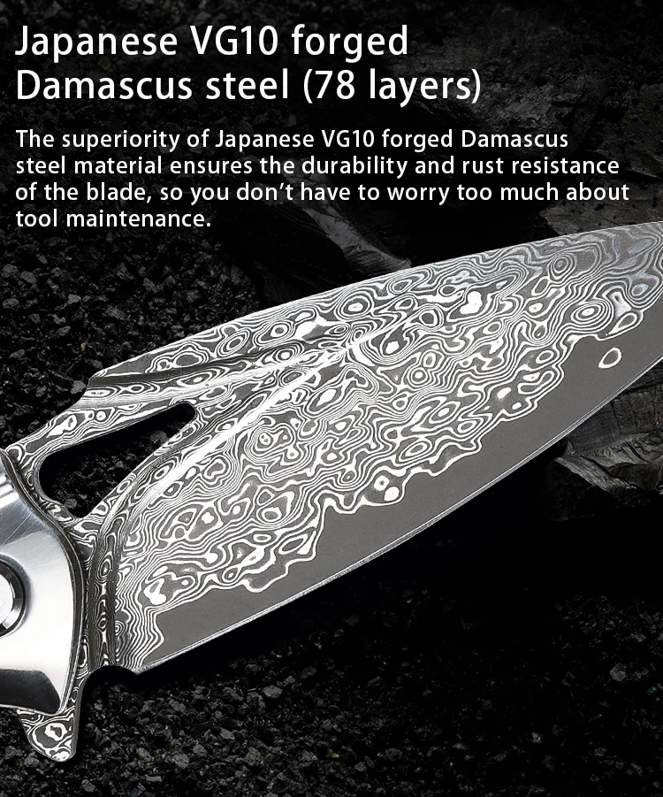Blade material: Japanese VG 10 Damascus steel (78 layers)