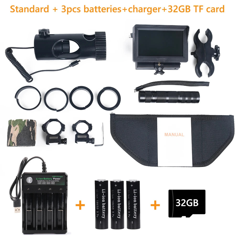 The Night Vision Camera is with 3MP 16MM IR optics scope camera lens, the 3MP adjustable infrared camera provides sharp and clear image both in day and night. Multifunctional 4.3 inch HD display with 32GB Micro SD (optional) to record any moment on the target.