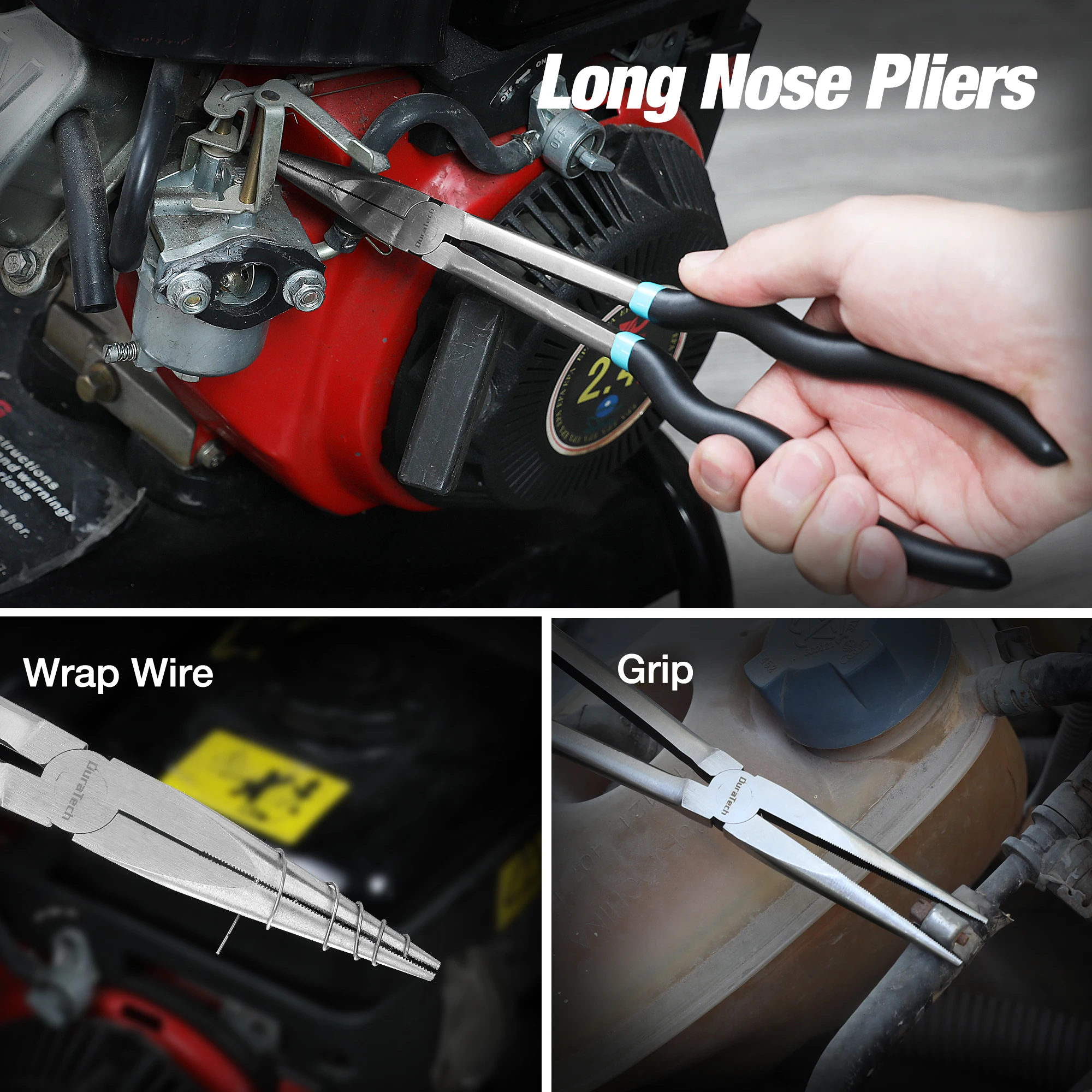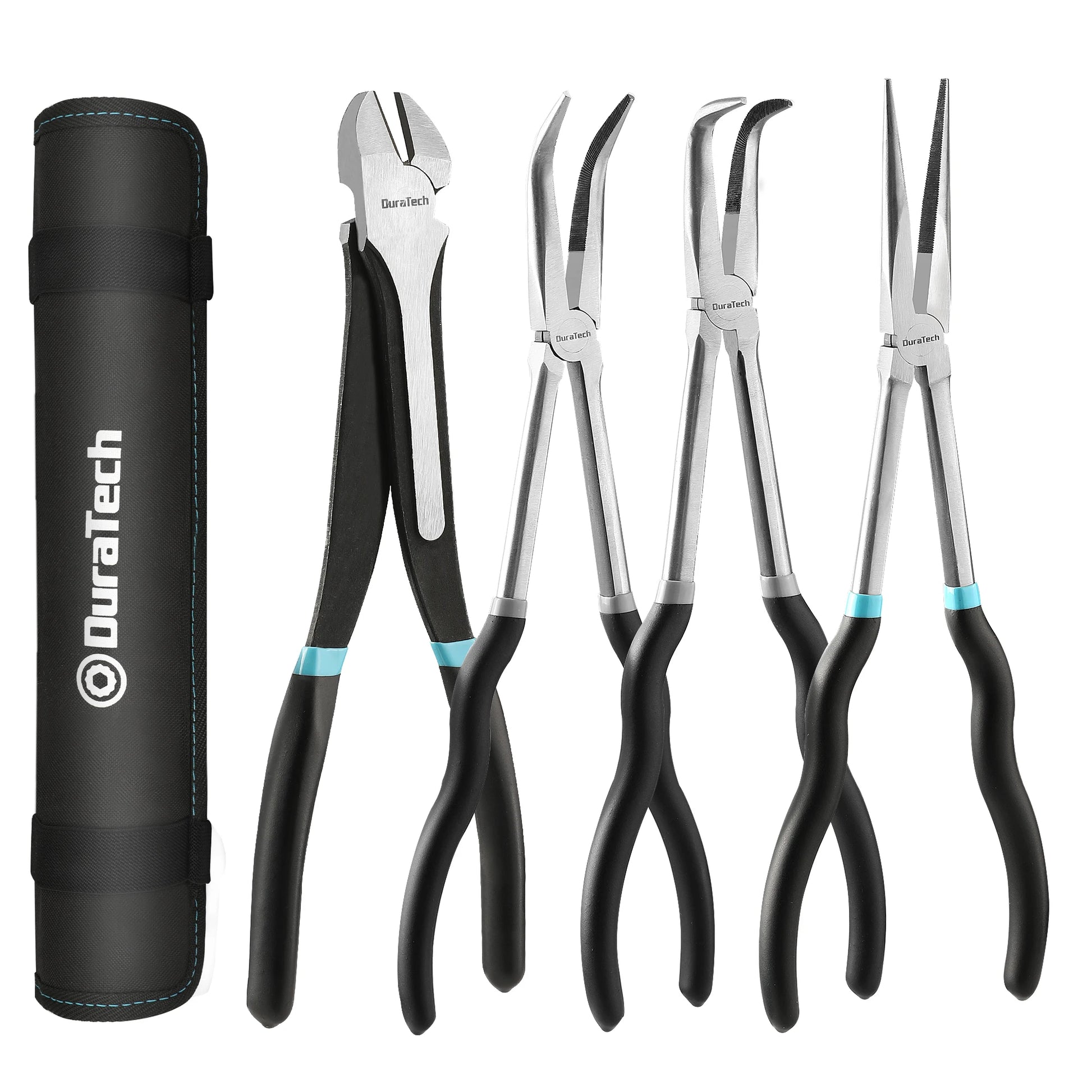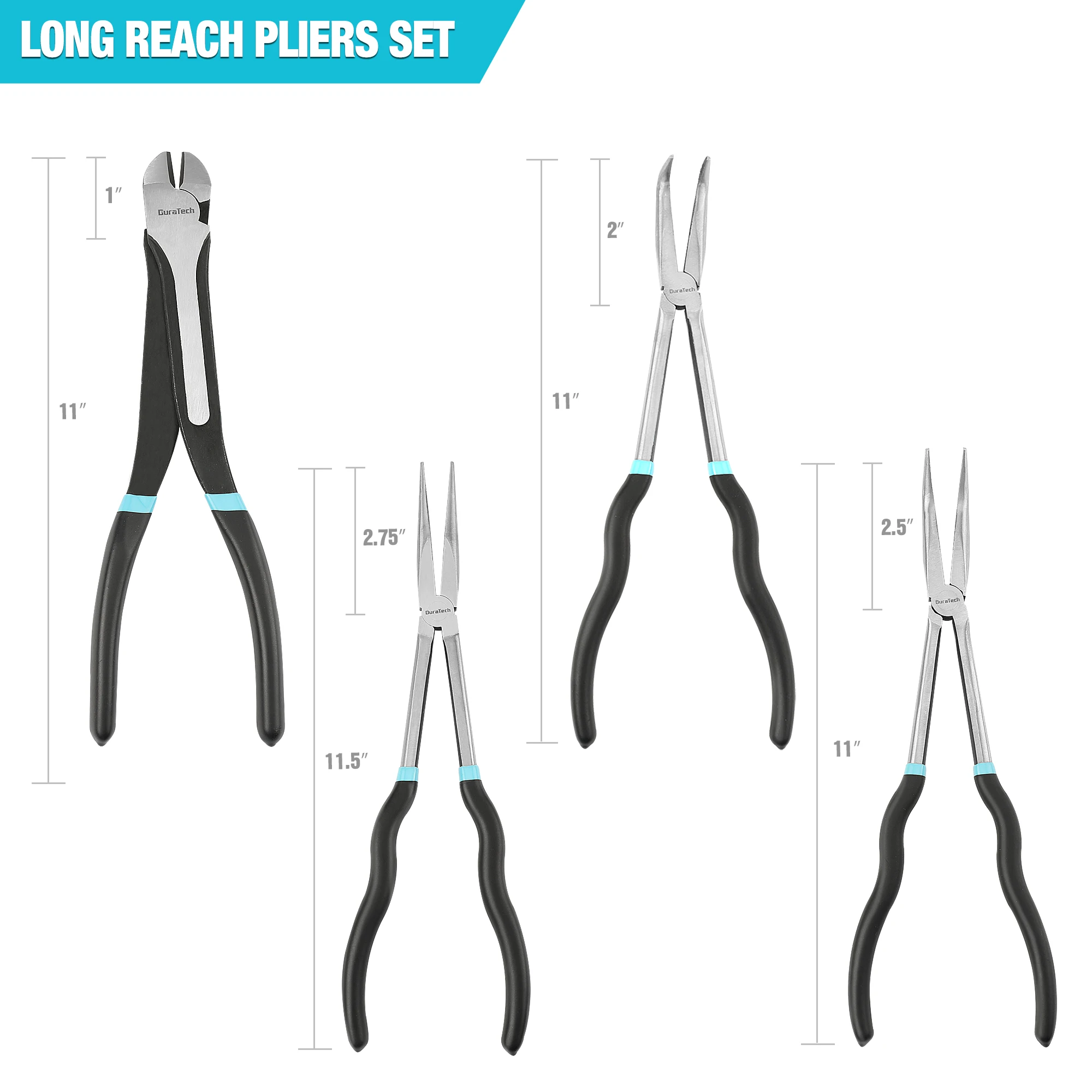 DURATECH 4 PCS Extra Long Needle Nose Pliers Set, Premium CRV Steel, 11" Long Reach Straight Pliers, 90° Bent Nose Pliers, 45°Be