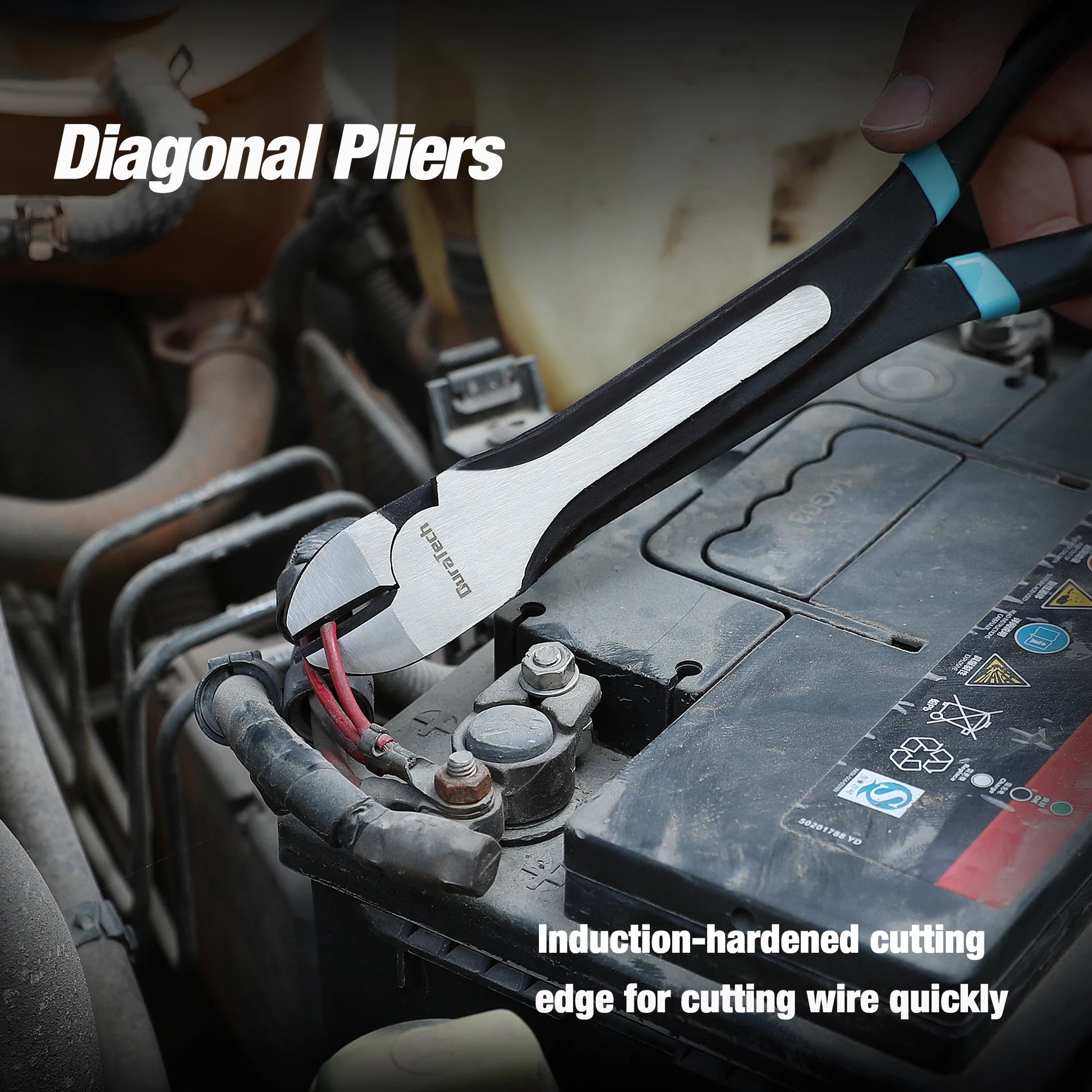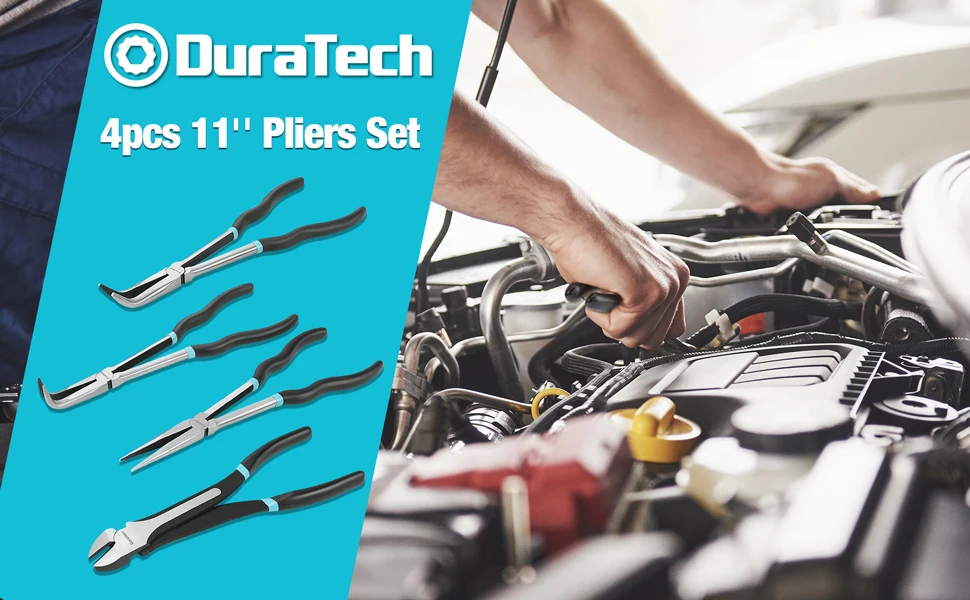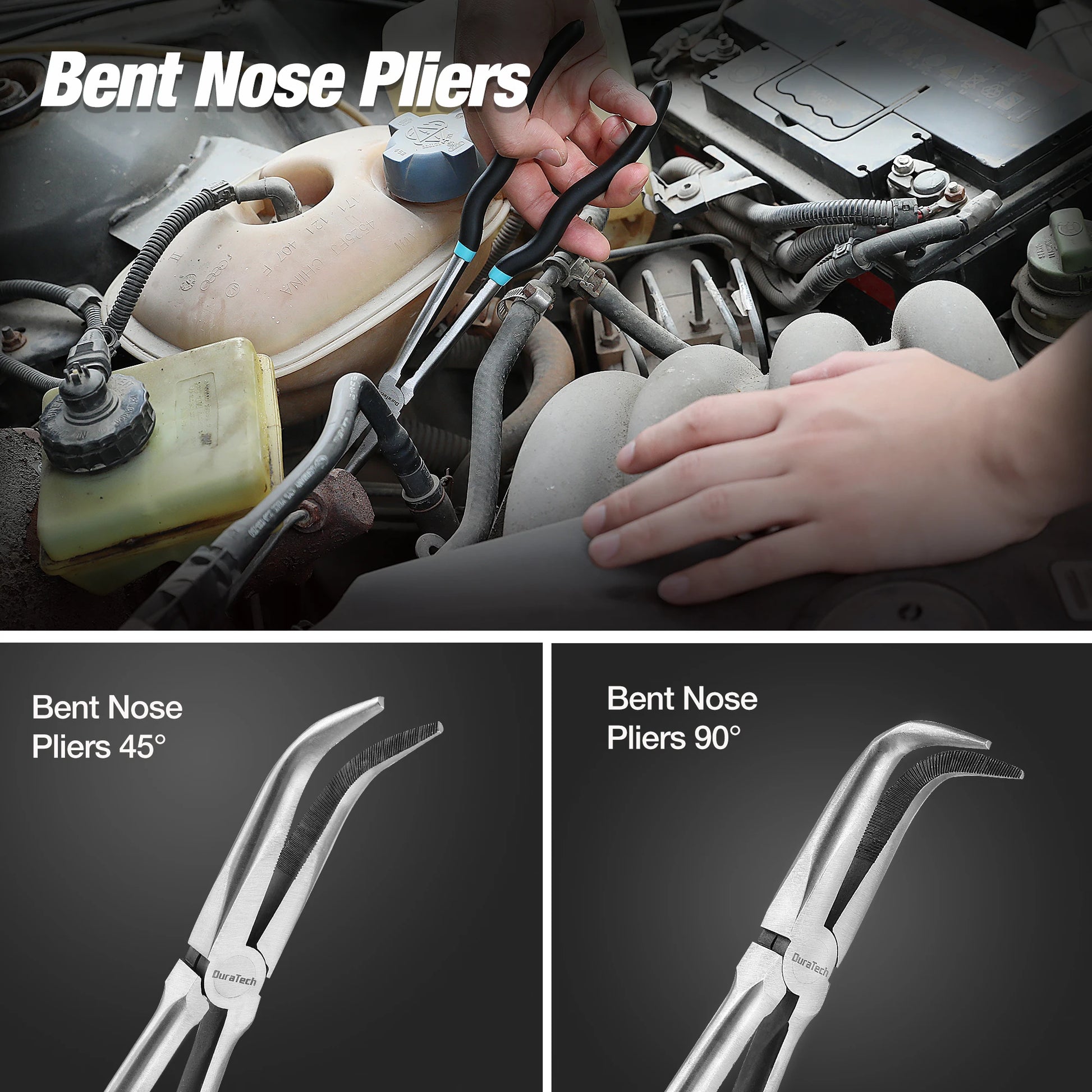 DURATECH 4 PCS Extra Long Needle Nose Pliers Set, Premium CRV Steel, 11" Long Reach Straight Pliers, 90° Bent Nose Pliers, 45°Be