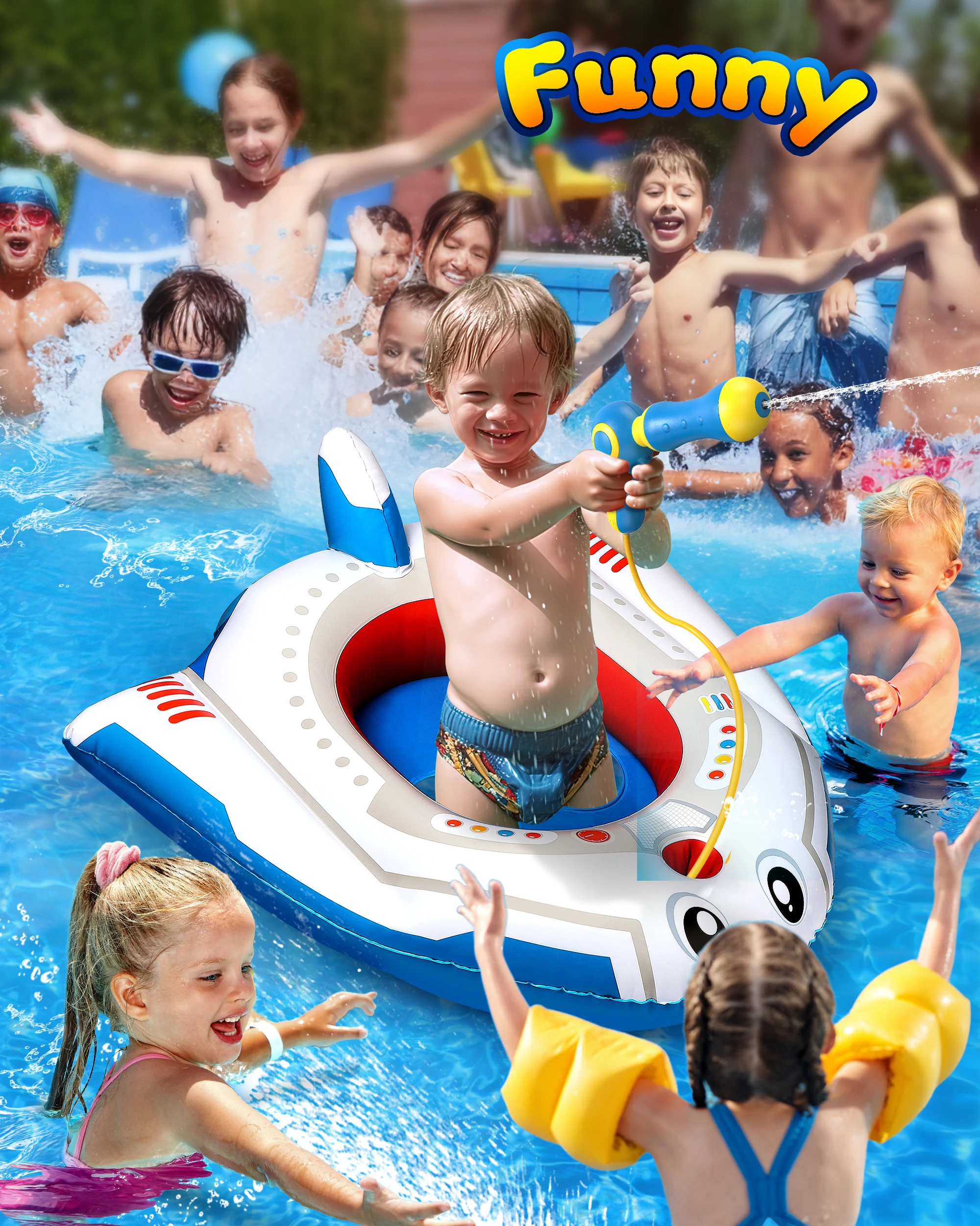 Kids Pool Float With Water Gun,Inflatable Ride-On Airplane Swimming Pool Toys For 4 5 6 7 8 9 Years Old Boys Girls Summer Fun