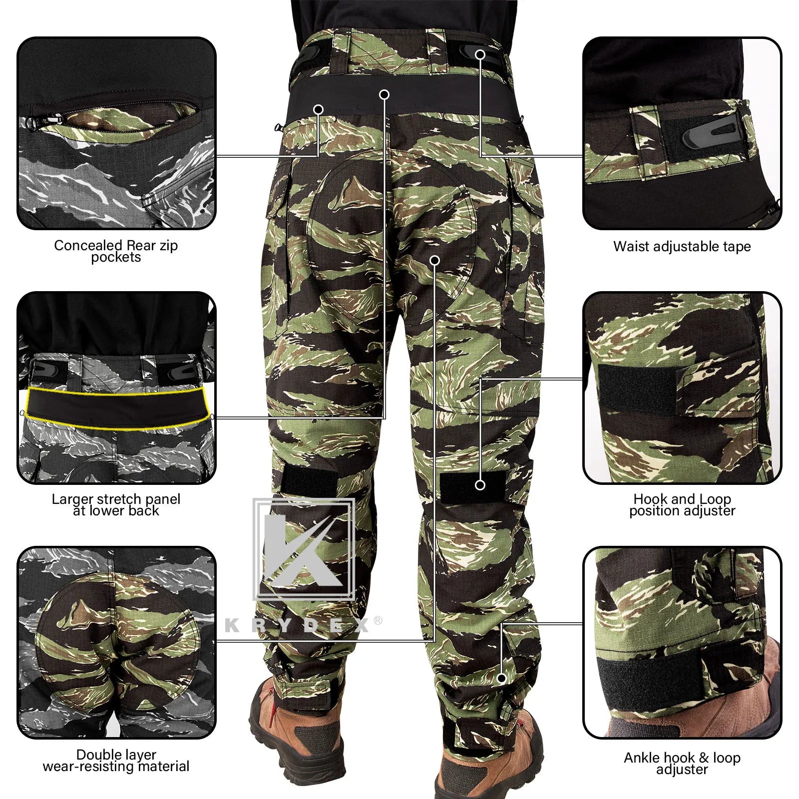 KRYDEX Camouflage Tactical Combat Pants Tactical Combat Trousers Knee Pads Outdoor Hunting Uniform Gear