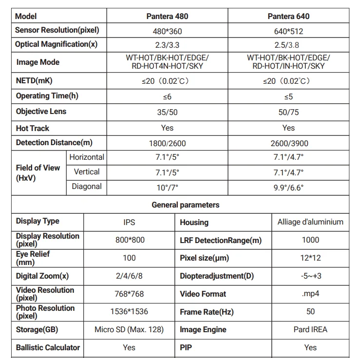 Pard Pantera 480/640 Thermal Imaging Scope Hunting Night Vision Scope Ballistic Calculator 20mK PIP Waterproof