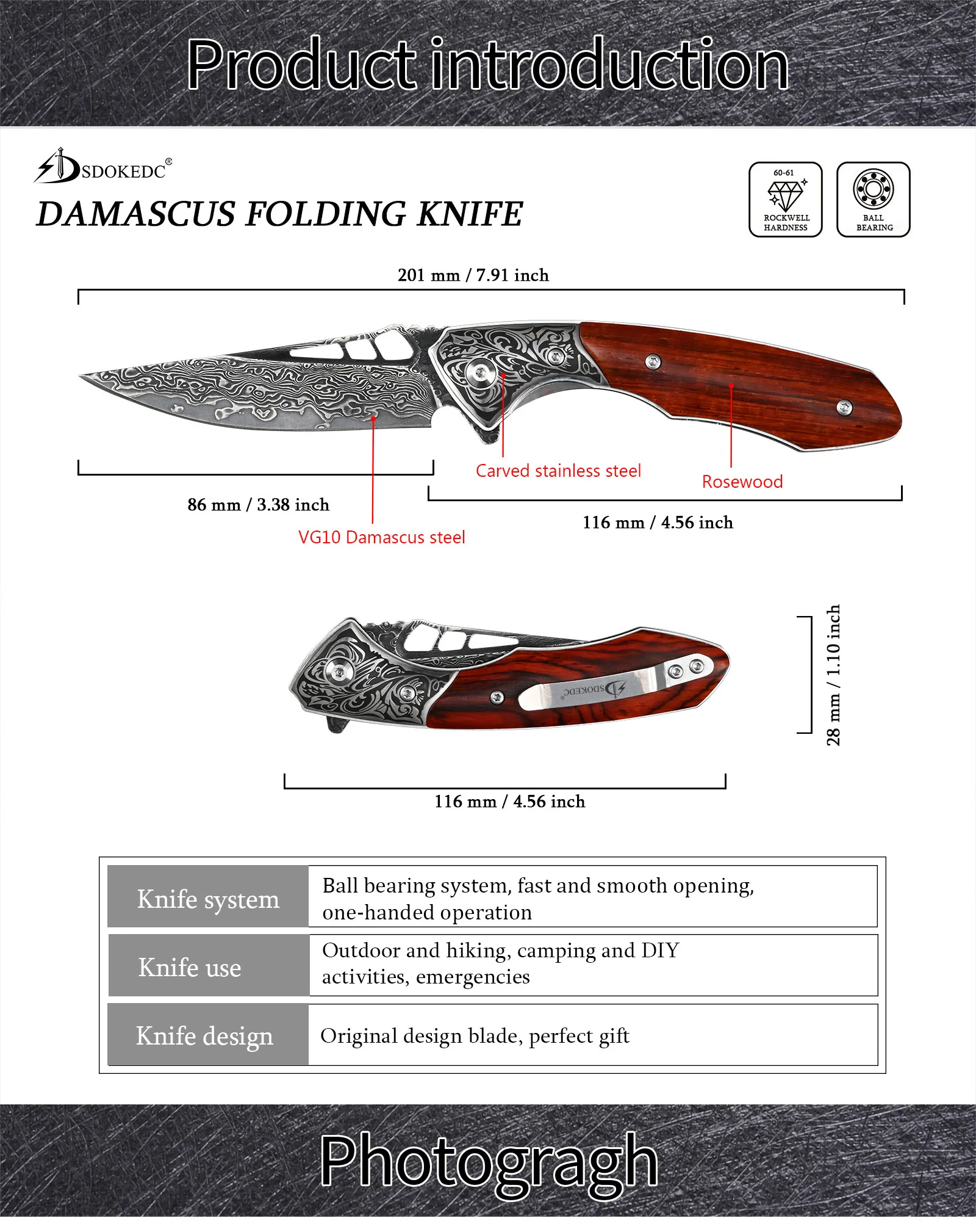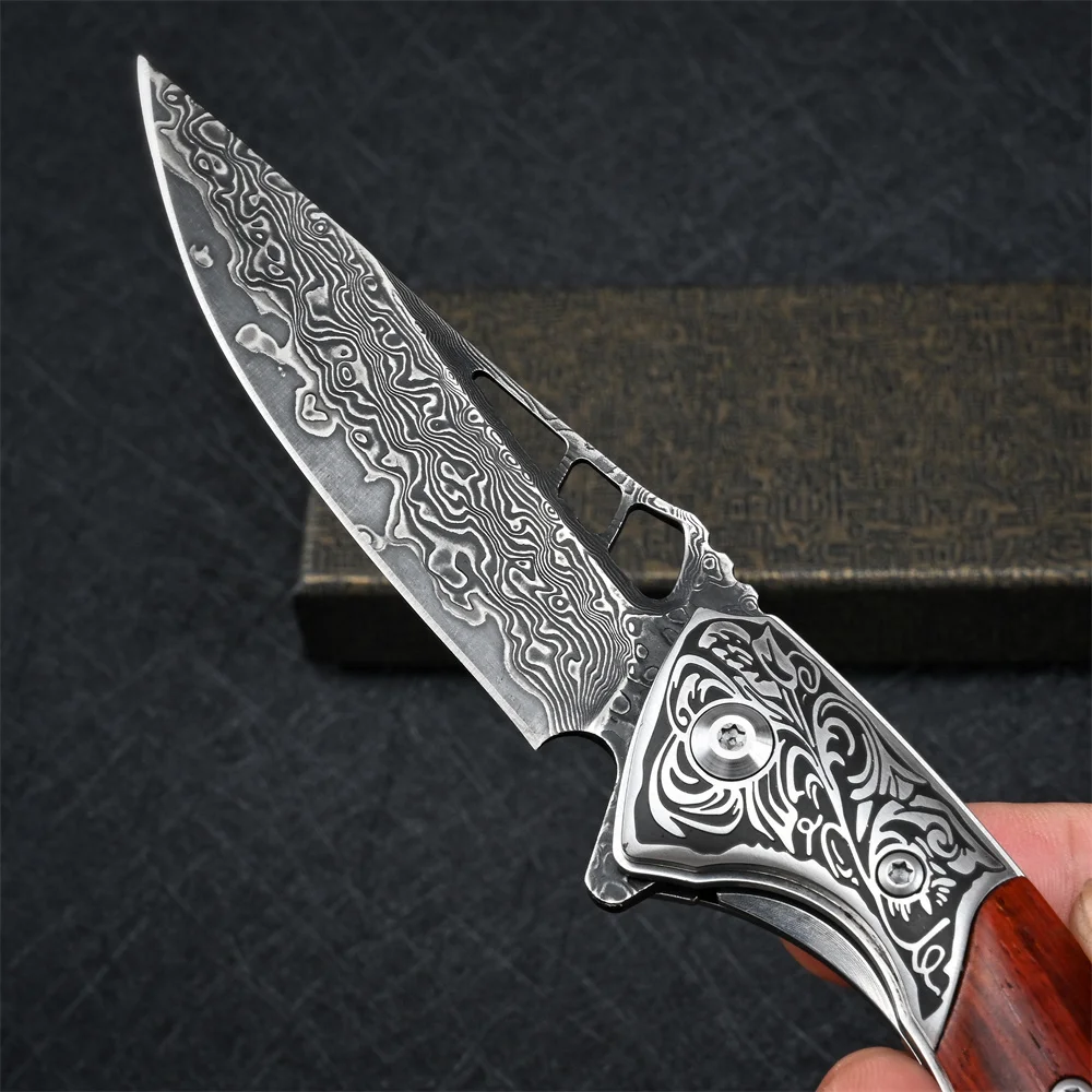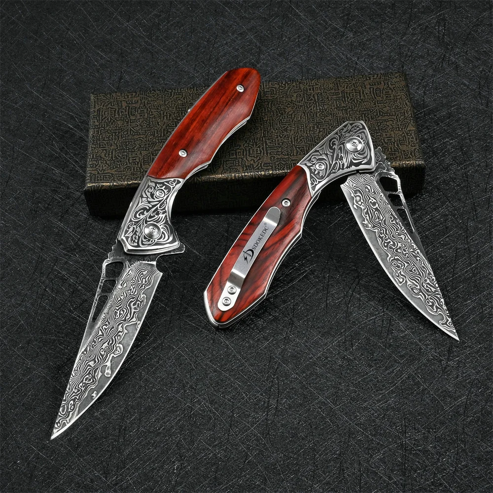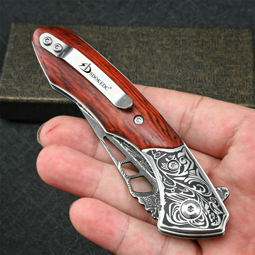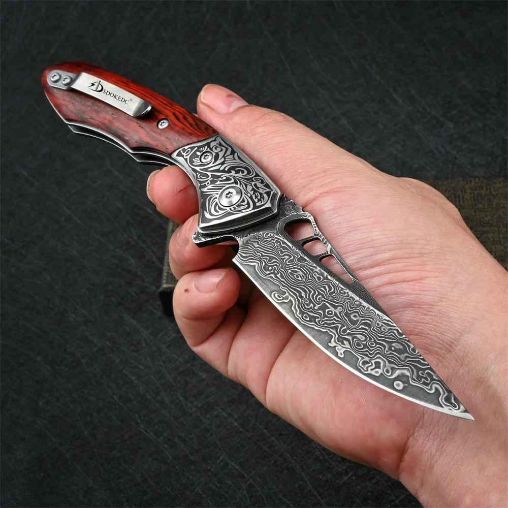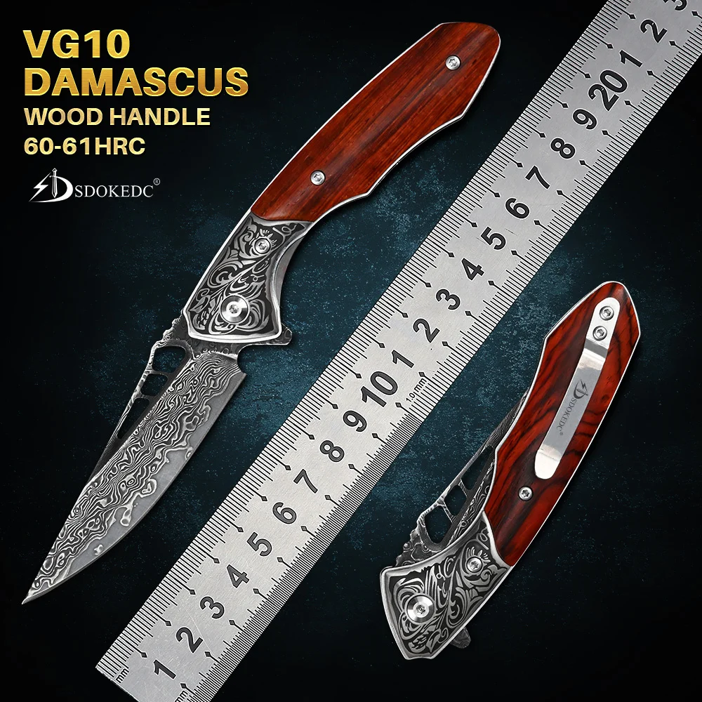 SDOKEDC VG10 Damascus Pocket Knives for Men Utility Flipper Tactical Folding Knife For Camping Survival Hunting Fishing And EDC