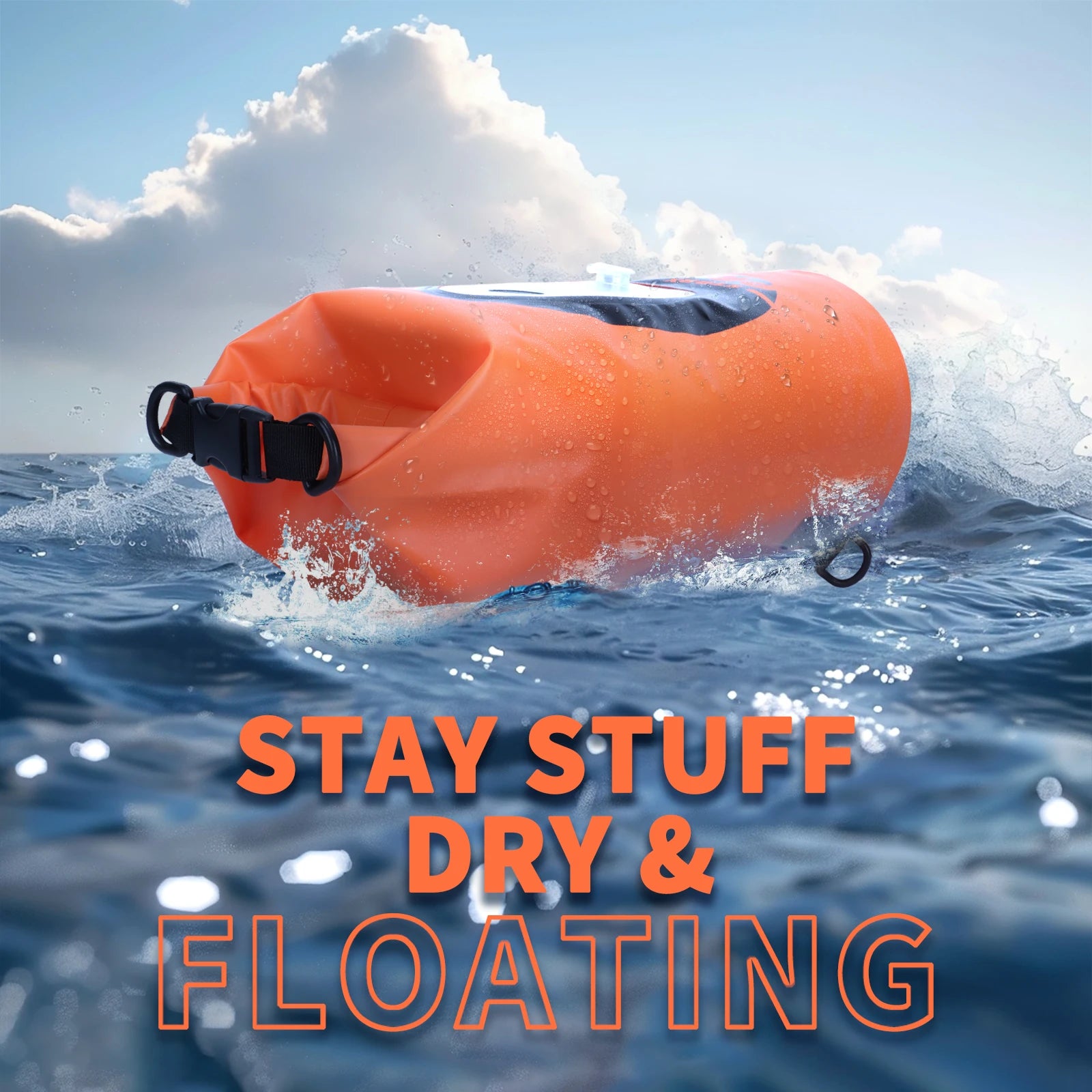 4ROLL TOP CLOSURE: The waterproof bag features a roll-top closure that can be folded 3-4 times for secure sealing, preventing water from entering. Made of eco-friendly PVC material, it offers excellent corrosion resistance, heat resistance, and foldability, ensuring durability in harsh environments for long-term use.