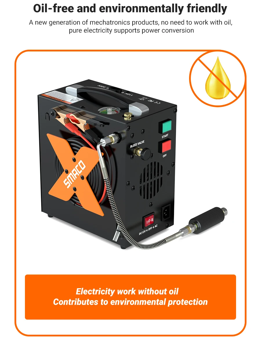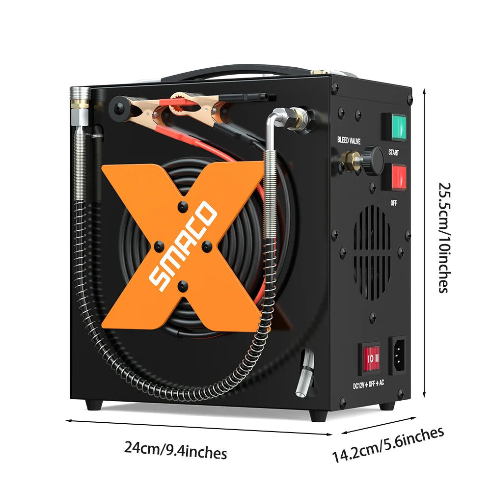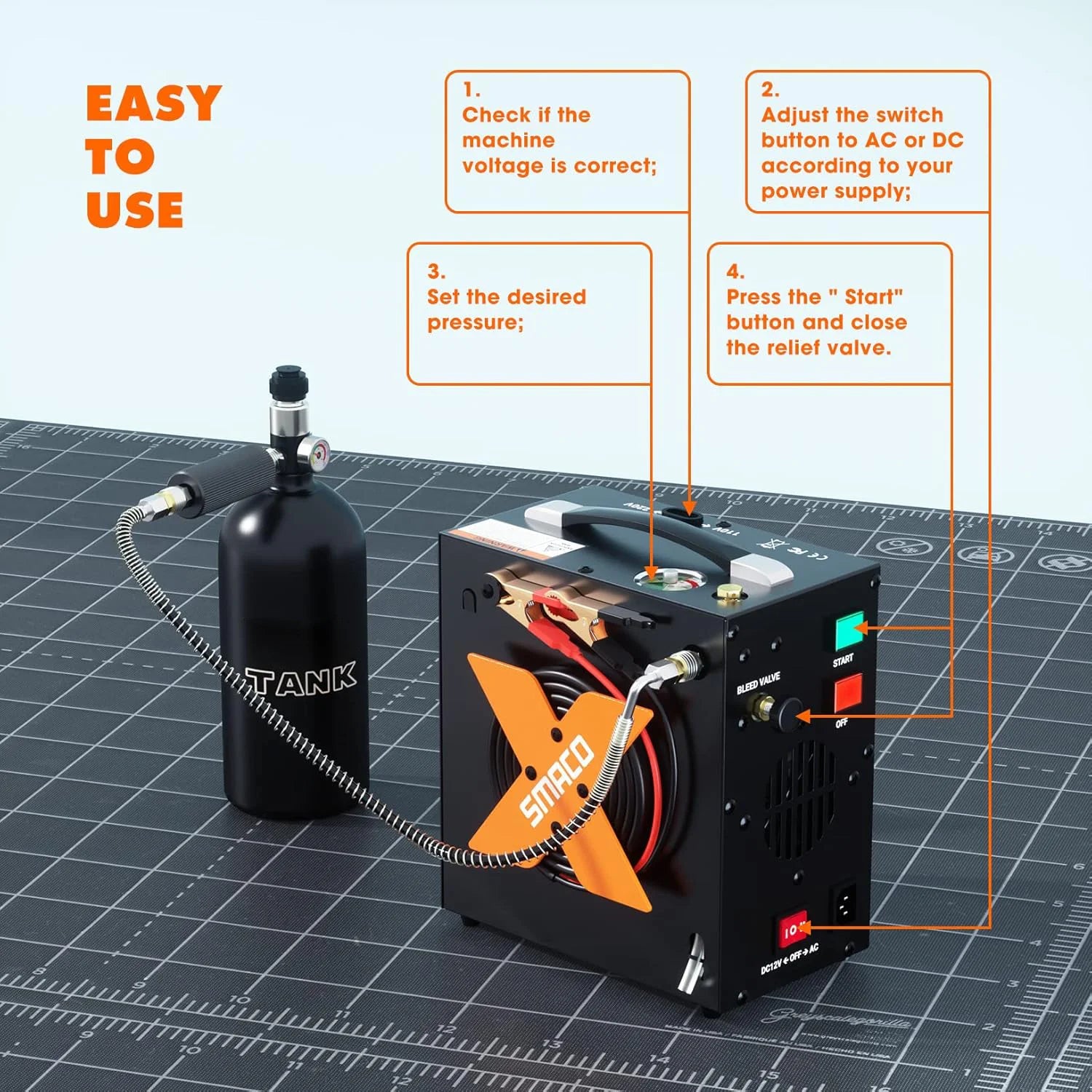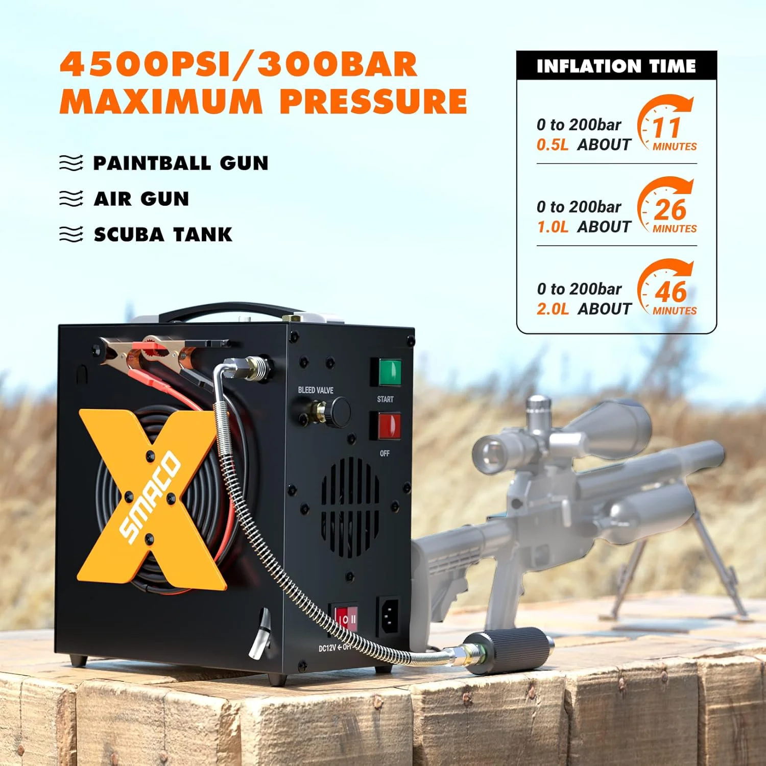 SMACO Portable PCP Air Compressor 4500Psi/30Mpa High Pressure Air Compressor for Paintball/Scuba Tank HPA Pump Fill Station