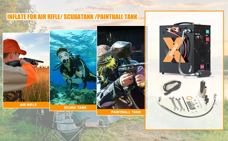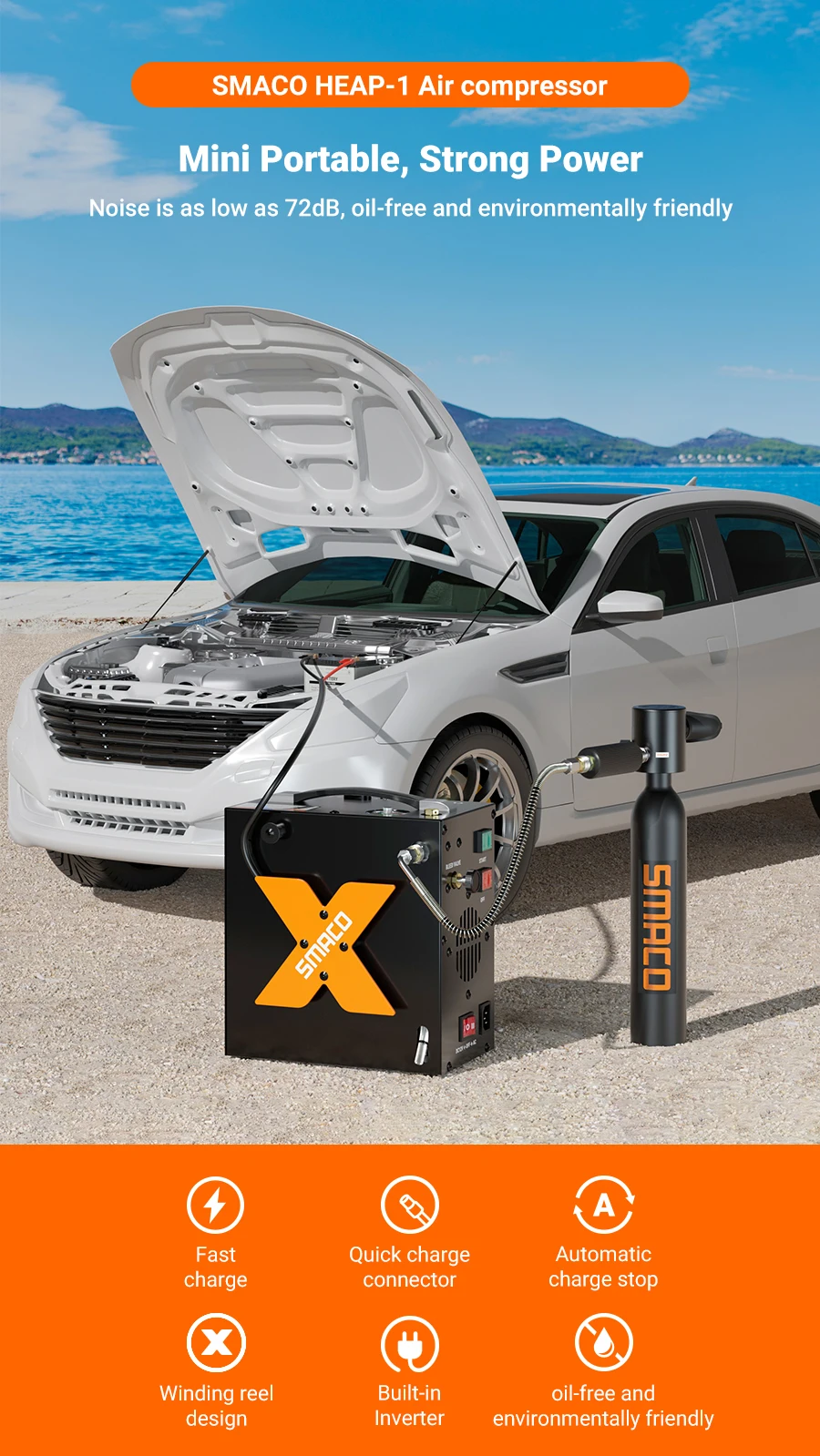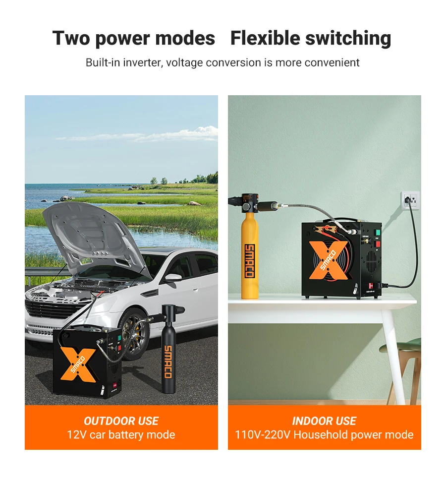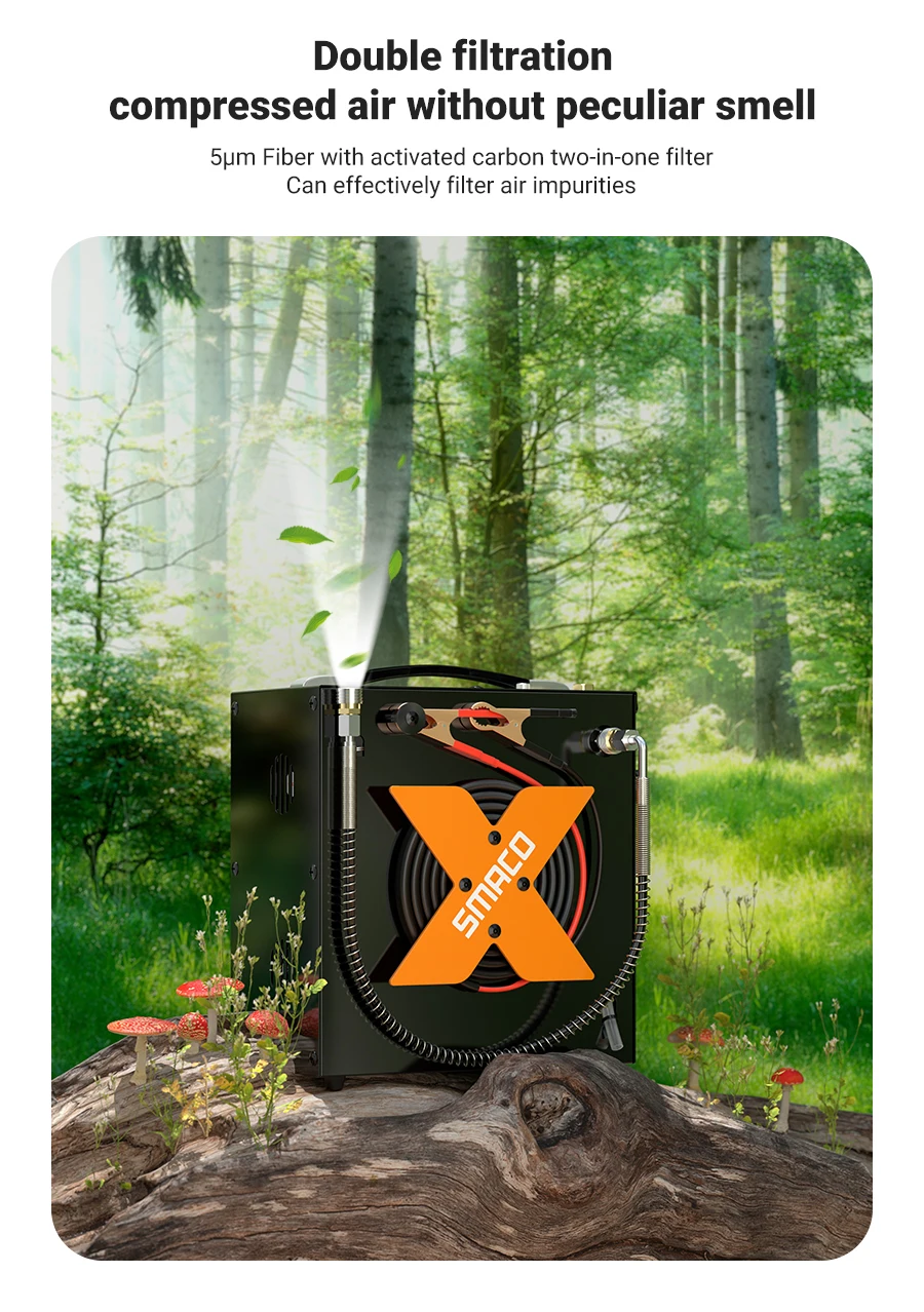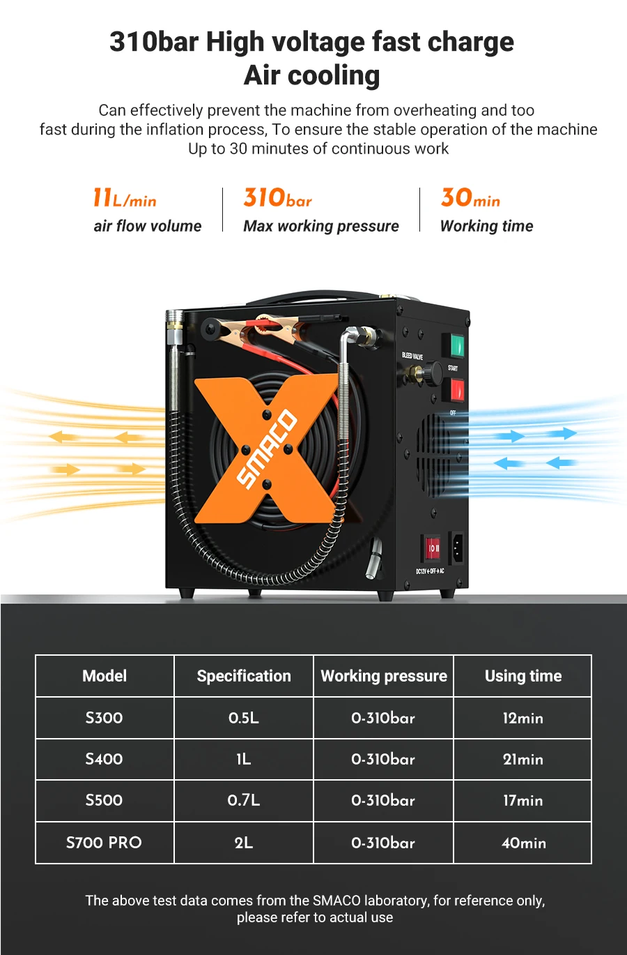 SMACO Portable PCP Air Compressor 4500Psi/30Mpa High Pressure Air Compressor for Paintball/Scuba Tank HPA Pump Fill Station