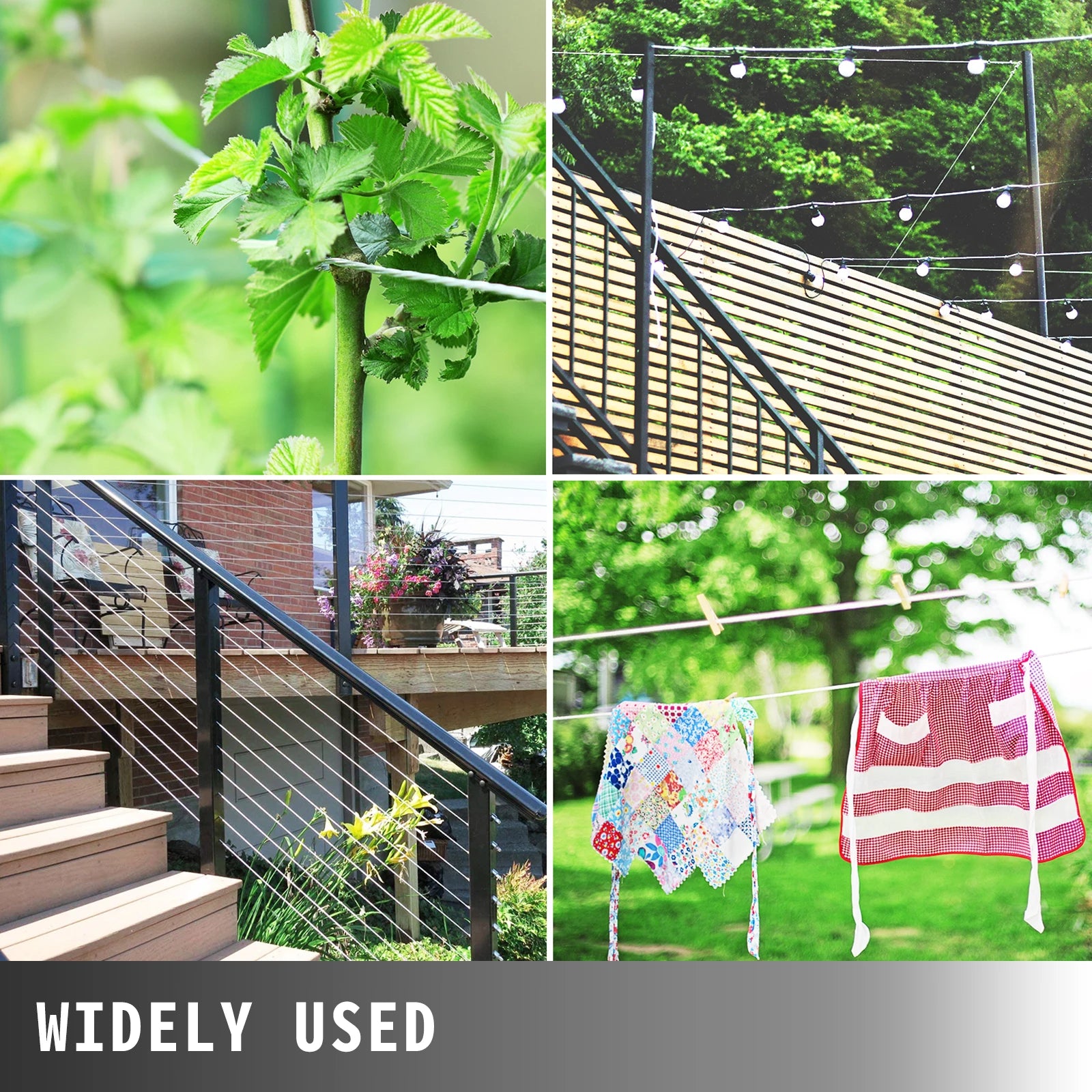 Broad Applications: Get ready to take control of any space! Perfect for indoor and outdoor use. The 500ft stainless steel cable meets all your daily needs! The go-to choice for deck railing, garden fencing, supporting your plants, hanging birdfeeders, string lights, clotheslines, etc. Add some freshness to your life with thiswith SucceBuy wire rope.